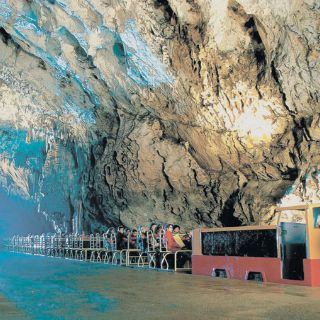 La visita por los 20 kilómetros que conforman la cueva se realiza a bordo de un tren, que se adentra dos kilómetros para llegar a la Gruta Antigua, la primera galería de estalactitas y estalagmitas.