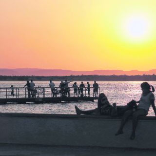 Nuestra aventura nos lleva de nuevo a La Paz, ahí en su malecón, donde se rentan bicicletas por 100 pesos o donde también se organizan competencias improvisadas de clavados mientras llega el atardecer, degustando un taco de camarón (15 pesos) del Bismarkcito. El astro rey no decepciona, se duerme pintando el cielo de tonos rosas hasta llegar al rojo.