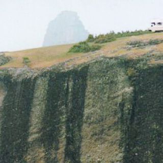 Arriba de la meteora con el camión, rodeados por un enorme abismo. ESPECIAL