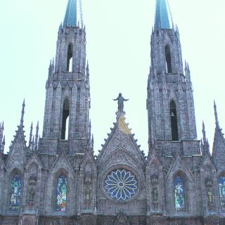 Vale la pena dedicarle un largo rato al exterior de esta construcción, pues los ricos detalles con los que está adornada su fachada lo convierten en un deleite a los ojos de quienes aprecian la arquitectura. La fachada principal, con sus vitrales y arcos ojivales son exponentes de la proeza y talento de sus constructores, quienes agregaron como detalle las estatuas de los 12 apóstoles.