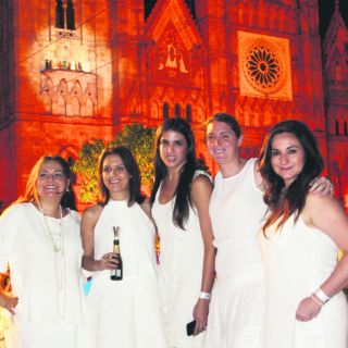 Loable la organización del anfitrión EDUARDO URIBE y su equipo, las Relaciones Públicas y el manejo de medios de la agencia de MARCELA VIZCAINO SERVÍN, así como el entusiasta grupo de líderes voluntarios, quienes hicieron posible que en un santiamén la ola de 600 parejas vestidas impecablemente de blanco, montaran su propia mesa con mantel, vajilla, copas, utensilios y adornos, todo en el albo color. Ya instalados y con copa en mano, se agitaron las servilletas para dar inicio a la cena amenizada por el grupo “Jazz Troupe” de MARIANA VIGUERAS... Las luces de bengala iluminaron la plaza y la magnífica iglesia neogótica con la música de Guadalajara de fondo, creando un ambiente de nostálgica alegría.