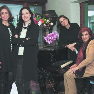 Un pianista recibía a las asistentes con bellas melodías, se le unieron un violín y un saxofón amenizando la comida en la terraza, en una mesa para 20 exquisitamente vestida con variados bouquets florales.
