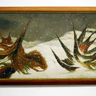 Otro consentido de estos coleccionistas, es sin duda el maestro japo-mexicano don Luis Nishisawa, al que se le dedica buena parte de esta exposición, y muy merecidamente, dada la pulcritud cromática y formal de su inventiva y característica manera de ver el paisaje del país.