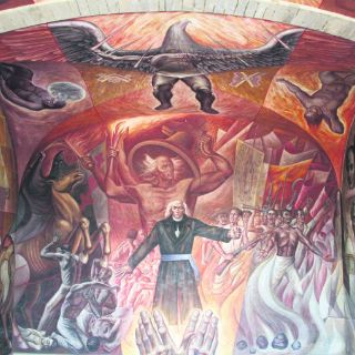 GUADALAJARA, JALISCO (20/NOV/2016).- Todo comenzó mientras me encontraba de viaje en Irapuato. Era la primera vez que me aventuraba en solitario con mi cámara fotográfica. Tras deambular por la ciudad, llegué al Palacio Municipal y aproveché su hermosa arquitectura para tomar algunas fotografías, primero de fuera, luego del interior del lugar. Desde que llegué, captó mi atención el espléndido mural con la que se adorna una media bóveda del recinto.