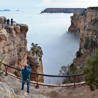 fenómeno meteorológico inusual depositó un colchón de nubes espesas dentro del Gran Cañón del Colorado. La inversión de nubes se mantuvo en el Cañón hasta el jueves.