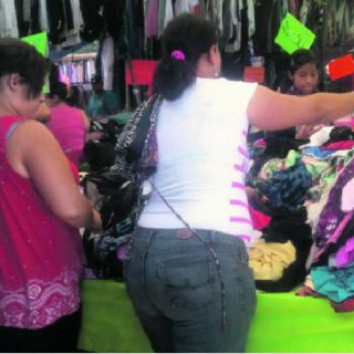 Las mujeres son las administradoras de la crisis cotidiana y las clientas fieles de la segunda mano. “Los hombres son delicaditos”, se quejan varios comerciantes. A diferencia de ellos, centenares de muchachas visitan el tianguis de Mezquitán con sus madres, sus hijas, sus amigas. Concentradas los cúmulos de ropa lucen como equipos de hormigas obreras antes del aguacero. Saben jalar una blusa desde el fondo de una pila, se miden ropa sobre su ropa, son espejo unas de las otras: “Te queda aguada de los brazos”, “Se te ve rara de las nalgas”, “Ándale, si no te lo quedas tú yo lo voy a agarrar”.