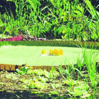 A golpe de remo, metiéndonos por las aguas quietas de la selva inundada, las enormes hojas flotantes de los nenúfares “Victoria Regia” no tardaron en asomarse entre los pantanos anegados. Unas pequeñas mariposas amarillas completaron la bella imagen que ahora comparto con ustedes. Las flores ya se habían cerrado: llegamos tarde. Así es la selva.