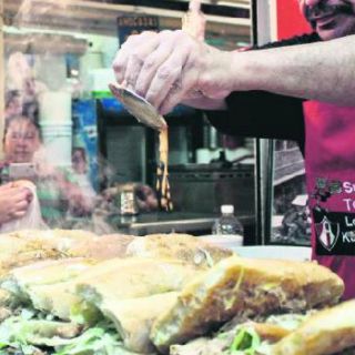 Chava, como lo llaman los clientes que trajinan por el estrecho pasillo al pie de su pequeño puesto, uno de los más longevos —te dice—, manipula carne, verdura, teleras, mayonesa y mostaza con la ayuda de una espátula de metal sin perder de vista a la gente que pasa. Tú vuelves a salivar. Una y otra vez.