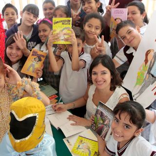Invitó a los niños a escribir, sin pena, sin pensar si son valiosas o no sus historias. Lo importante es empezar a contar. Recibió aplausos, firmó autógrafos, convivió con los escolares de Guadalajara.