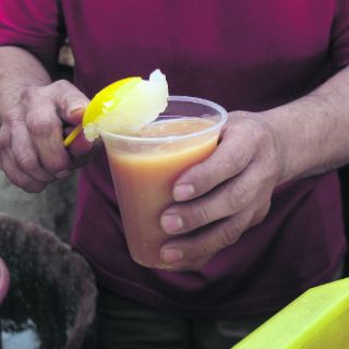 “En un principio, cuando yo empecé a vender esta bebida, no se servía con nieve; pero unos señores que la comercializaban a espaldas del teatro Degollado le empezaron a poner nieve de garrafa de limón, y a la gente le gustó; de ahí que ahora se sirve con este ingrediente”, explica don Manuel.