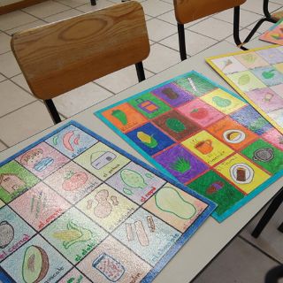 La lotería se dividió en: sustantivos comunes, como plantas, animales, comida, utensilios. Los muchachos tuvieron que investigar las palabras con las que se identificaban estos objetos en la época prehispánica, hacer dibujos de los utensilios y armarlos en cartas como en la lotería.