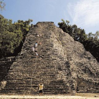 Una de las pirámides más importantes es Nohoch Mul, la estructura maya más alta, por encima de El Castillo de Chichén. Dos kilómetros de camino es lo que toma llegar a su base.