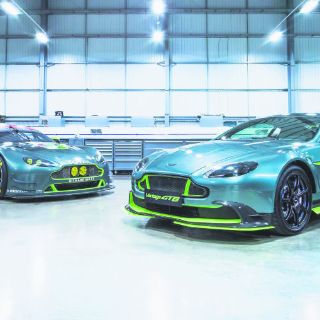 Se trata del Vantage GT8, que no está muy lejos de sus raíces, pero destacan cambios muy vistosos que proporcionan mayor impacto en la presencia del Coupé. El corte del coche es totalmente deportivo. De entrada destaca una estridencia de color entre gris y azul con vivos en color verde fosforescente. La parrilla; espejos laterales; lip frontal y faldones laterales toman matices más deportivos, además se añade un alerón aerodinámico para mantenerlo adherido al piso; rines deportivos y detalles de contraste en la parte baja del bólido. El resto del auto sigue siendo el mismo.