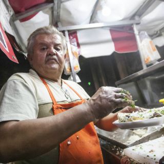 GUADALAJARA, JALISCO (10/ABR/2016).- "¡Los mejores tacos de Guadalajara!”, exclamó eufóricamente una alemana intentando hablar español, mientras Gregorio Delgado, fundador de la “Taquería Santo Goyote: El Taquito Light”, se encontraba en medio de una entrevista para