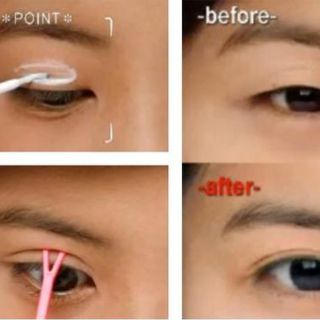 La moda consiste en usar un pegamento especial para la piel, que se agrega a lo largo del párpado, y con utensilio similar a un palillo de dientes, se estiran la zona hasta el punto en que su ojo se abre en grande..