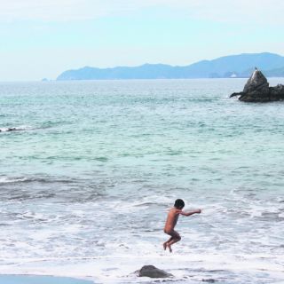 Regresamos a la escalera y bajamos a El Viejo, formidable playa con un precioso arco en su punta izquierda, miraba a las bahías hermanas: Manzanillo y Santiago. Chapoteamos en el brusco mar, retador y refrescante a la vez, teníamos que estar atentos a las olas, de lo contrario nos sorprendería su fuerza. Posteriormente tomamos un baño de sol en sus arenas finas. Más tarde llegó un niño, se desprendió de todo, subió a una pequeña piedra, y cuando llegó la ola, brinco con entusiasmo sobre ella, encuentro de fuerzas, de percepciones, el niño estaba feliz de sumergirse y nadar en aquellas aguas.