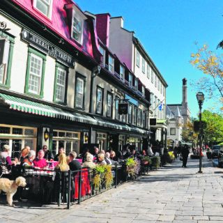 Muestra su rostro más emblemático al pasear por el viejo y amurallado Quebec, comenzando en la Terraza Dufferin o el Parlamento, ubicados en la Ciudad Alta, en la que se puede abordar un carruaje tirado por caballos, ver a la gente caminar por las calles más antiguas y a los barcos surcando el gran rio, cuyo ancho cauce se reduce al pasar frente a la ciudad.