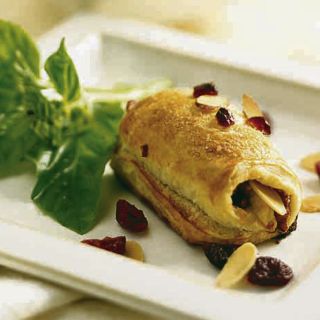 Extender la pasta hojaldre, formar rectángulos de ocho por cinco centímetros procurando que la pasta quede delgada; untar con la preparación de arándanos, agregar los arándanos (reservar algunos para decorar) y las almendras; enrollar la pasta. Acomodar los rollitos en una charola para horno previamente engrasada; barnizar los rollos con el huevo, espolvorear con azúcar, algunas almendras y arándanos picados. Hornear durante 20 minutos a 180°C o hasta que la pasta esté bien cocida y dorada. Dejar enfríar. Rinde seis porciones.