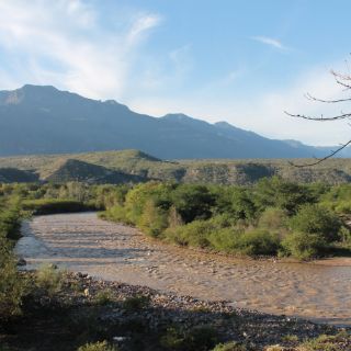 De Chimaltitán continuamos nuestro paseo rumbo Sur, bordeamos el cerro Prieto y el río Bolaños a la vez, que se deslizaba entre un cordón verde y al fondo estaba la silueta del cerro Los Amoles, luego giró con gracia al Oeste entre un sauzal, para realizar espectaculares serpenteos, en La Cofradía pasa al Oriente y luego al Poniente, después de haber hecho un largo zigzagueo; en Paso de las Higueras vira al Sur y en Tomillo, entra por el Oeste y gira al Sureste, acercándose a El Piñón, el camino ascendió para brindarnos un fragmento de giros. Luego miramos el cautivante arroyo Guásima, que corría por las faldas de un cerro que semejaba un medio cráter.