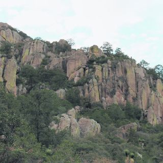 Posteriormente regresamos al crucero, para adentrarnos a la espectacular sierra por un camino de tierra, al subir entre coníferas vimos algunas cabañas del Centro Ecológico el Manantial, que ofrece tirolesas y senderismo (elmanantial_jerez@hotmail.com), las esculturas rocosas no dejaron de asombrarnos. Miramos un gran paredón rocoso, vertical y casi a nivel en todo su claro, parecía una fortaleza y del otro lado apreciamos una cresta rocosa, fraccionada por cortes verticales, algunos árboles diferenciaban su textura, lisa y con musgo, del lado izquierdo había otras crestas, pero ondulantes en sus niveles, subían y bajaban con garbo. Fuimos encantados por esas crestas graníticas, con salientes y vistosas puntas, que le daban movimiento hechizante. Fabulosos e inolvidables parajes rocosos.