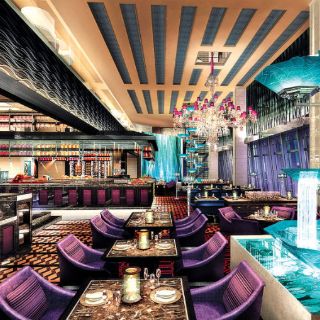 Dispone de varios restaurantes de cocina oriental e italianos, un salón de té, un bar en la azotea donde se preparan degustaciones de tapas asiáticas, así como salones privados.