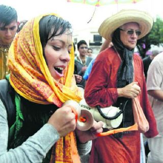 Entre música y cánticos, integrantes de la comunidad ''Hare Krishna'' recorrieron las calles de la ciudad