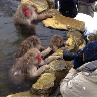 Pero ahora, los primates -que viven en grupos de entre 40 y 200 ejemplares-, descienden de los bosques y acantilados para sumergirse en estas aguas calientitas y protegerse del frío, cuando la temperara baja drásticamente en los meses de invierno, de diciembre a febrero. Bañarse con los demás primates, forma parte de su socialización.