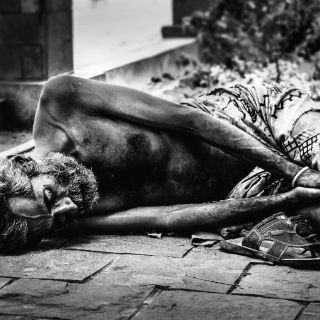 Muy cerca, echado junto a la puerta de su mansión está un mendigo. No está cubierto de lino y púrpura, sino de llagas repugnantes. No sabe lo que es festín. No le dan ni de lo que tiran de la mesa del rico. Sólo los perros callejeros se le acercan a lamerle las llagas. No posee nada, excepto un nombre, Lázaro o Eliezer que significa Mi Dios es ayuda. La escena es insoportable. El rico lo tiene todo. No necesita ayuda alguna de Dios. No ve al pobre. Se siente seguro. Vive en la inconsciencia total. ¿No se parece a nosotros? Lázaro, por su parte, es un ejemplo de pobreza total: enfermo, hambriento, excluido, ignorado por quien le podría ayudar. Su única esperanza es Dios. ¿No se parece a tantos millones de hombres y mujeres hundidos en la miseria?