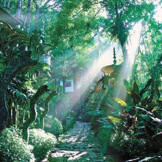 El jardín de 36 hectáreas es un laberinto atiborrado de símbolos y estructuras gigantes de varios niveles que hacen comparsa con el entorno selvático.
