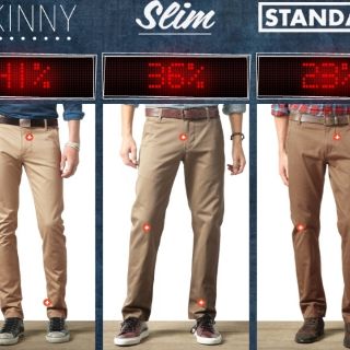 *Skinny Tapered: es el más estrecho de los tres cortes. Ofrece una estética progresiva, atrevida y afilada. De una línea limpia, contemporánea este pantalón se presenta en una audaz opción de color como lo son el Riviera Blue y Wine Tasting Red.