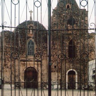 Al llegar a la plaza fui cautivado por un hermoso templo de piedra, dedicado a la Inmaculada Concepción, data del siglo XVII; su puerta fue rematada en arco de medio punto, sobre capiteles dóricos, enmarcada por medias columnas del mismo orden y con un cornisamento sobrio, la ventana coral es alta, en arco agudo lanceolado, y muestra una cruz, arriba hay un nicho con la Virgen, la fachada fue rematada en semicírculo con una bonita cruz de cantera gris, a los lados están dos bizarros torreones circulares que albergan escaleras y enmarcan con gracia la fachada. Del costado derecho se localiza el increíble campanario, entre torreones, como el templo, de planta cuadrada y de dos cuerpos, el primero enseña un arco agudo y el segundo un vano circular y, se cubrió con una pirámide con un oval. Compré un coco y lo degusté admirando el templo.
