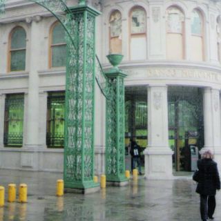 Del costado Oeste, se localiza el precioso Palacio Municipal, hoy por hoy, Museo Metropolitano de Monterrey, rico en piezas y documentos históricos; más adelante está el atractivo edificio del Banco Mercantil de Monterrey; a unos pasos se levantó un magnifico hotel de influencia europea, fue llamado “Ancira”; y al fondo resplandece la capilla del Sagrado Corazón, de pintoresco pórtico.