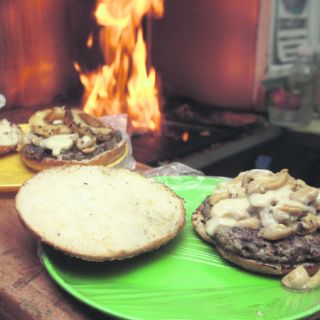 Una vez servida, surge la interrogante ¿por dónde empiezo? Y es que a simple vista, la tremenda pieza parece no tener fin. Hay en este sitio más de 12 tipos de hamburguesas. Todas se preparan igual, sólo varían los ingredientes: tocino, champiñones, queso manchego, láminas de vegetales, entre otros.