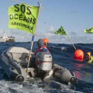 Activistas de Greenpeace se lanzan al mar ante un arrastrero francés
