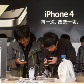 iPhone 4, con la apertura de dos nuevas tiendas en Beijing y Shanghai que atrajeron a muchos aficionados en este país, principal mercado mundial de internet y de la telefonía móvil.