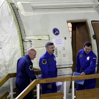 Como es habitual, los primeros en realizar las pruebas en la maqueta de la Soyuz fueron los miembros de la tripulación suplente, integrada por los rusos Serguéi Vólkov y Oleg Kononenko y su colega de la NASA Ronald Garan.