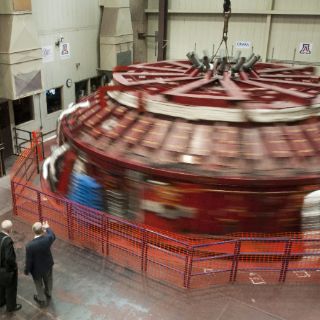 TUCSON, ARIZONA (14/ENE/2012).- Debajo de una cancha de fútbol y en un horno que alcanzó la temperatura de mil 165 grados Celsius, los técnicos del Observatorio Steward forjaron hoy un espejo de 8.4 metros de diámetro para el segundo lente del Telescopio Gigante Magallanes.