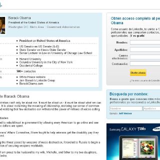 El propio Obama tiene una cuenta en Linkedin, en la que destaca, además de su actual cargo, su pasado como senador estatal y federal por Illinois, y su experiencia como catedrático de la Facultad de Leyes de la Universidad de Chicago.