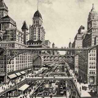 Los vecinos del Buenos Aires de 1900 imaginaban en el futuro una ''ciudad en las alturas'', sembrada de rascacielos, carriles colgantes para trenes y tranvías, así como un cielo atestado de aviones, globos, dirigibles y viajeros con mochilas aladas