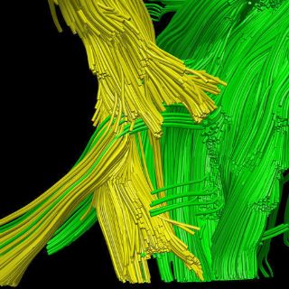 El método pinta los haces de fibras en color verde, amarillo y púrpura para diferenciar sus funciones. Los investigadores buscan señales de deterioro en las fibras que reducen el ritmo de las conexiones o que las interrumpan.