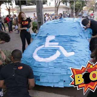 "BOOM" compartió el video en donde muestra cómo sus realizadores tapizaron de "post it" un auto que se encontraba estacionado en un lugar para personas en sillas de ruedas esto en las calles de Maringá, al norte de Paraná, en