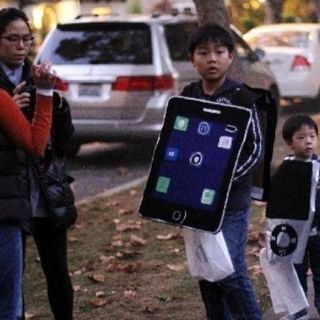 CALIFORNIA, ESTADOS UNIDOS (01/NOV/2011).- Un par de chicos disfrazados de iPad y de iPod estaban entre varios que visitaron la casa del fallecido Steve Jobs para que les regalaran alguna golosina por el día de Halloween.