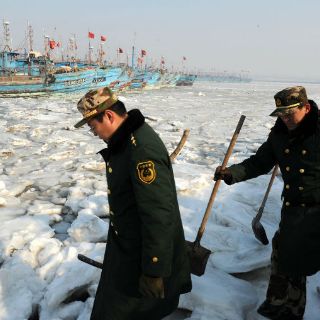 Mientras, en las costas del norte de China las frías temperaturas causaron heladas en las aguas del litoral, dejando a más de un millar de barcos encallados.