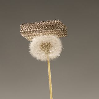 WASHINGTON, ESTADOS UNIDOS (19/NOV/2011).- Un equipo de científicos presentó el material sólido más ligero del mundo (cien veces más ligero que la espuma de poliestireno) y para demostrarlo difundieron una imagen en la que se ve una pequeña estructura enrejada metálica apoyada en un esponjoso diente de león.