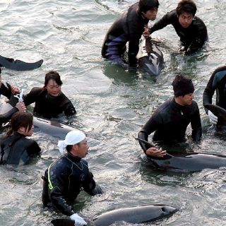Delfines son liberados en las costas de Japón