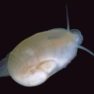 Esta característica anatómica sólo está presente en un caracol de las cuevas submarinas de Nueva Guinea conocido como "Pluviostila" por su forma de gota de agua y considerado también un fósil viviente.