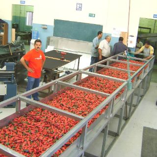 El horno es un aparato de ocho metros de largo por 1.5 de alto; en su interior lleva un transportador de malla de acero inoxidable grado alimenticio para tener sanidad del chile. En un extremo se introduce el producto que se distribuye por la malla y que tiene una capacidad aproximada para deshidratar y ahumar 400 kilos.
