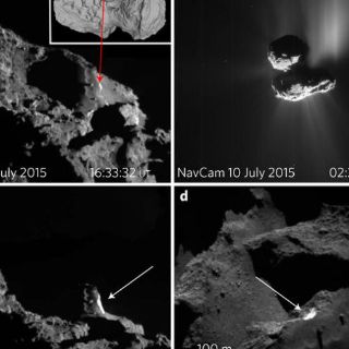 CIUDAD DE MÉXICO (21/MAR/2017).- Científicos de la misón Rosetta establecieron el primer vínculo convincente entre una emisión de polvo y gas y el derrumbe de un prominente acantilado, que dejó expuesto el inmaculado interior de 67P/Churyumov–Gerasimenko.
