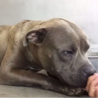 Este pitbull fue rescatado de una operación de peleas de perros y está siendo visitado en el refugio por una mujer, que quiere ver cómo va a responder a su atención. Ella habla suavemente a él, que le pide al perro a gemir en respuesta. Y cuando ella extiende su mano a través de las rejas? Su reacción no es para no perdérselo.