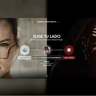 En la página, los usuarios deben elegir entre el Lado Luminoso y el Lado Oscuro de la Fuerza. Dependiendo de nuestra elección es que las aplicaciones de Google reciben ciertos cambios. Sus aplicaciones y servicios de correo, navegador, Mapas y YouTube reciben un nuevo aspecto.